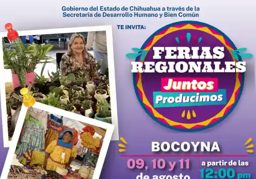 Con la finalidad de dar a conocer y promover productos elaborados por emprendedores chihuahuenses, la Secretaría de Desarrollo Humano y Bien Común (SDHyBC), en coordinación con el Gobierno Municipal, invita este próximo viernes 9 de agosto a la feria “Juntos Producimos” en San Juanito, municipio de Bocoyna.