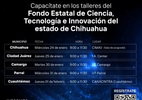 Con el objetivo de proporcionar información detallada sobre las reglas de operación y los proyectos elegibles, en las convocatorias vigentes del Fondo Estatal de Ciencia Tecnología e Innovación (FECTI), el Instituto de Innovación y Competitividad (I2C) invita a los talleres que se impartirán en Chihuahua, Juárez, Camargo, Delicias, Parral y Cuauhtémoc.