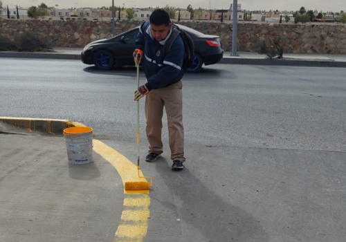 Personal de la Dirección de Limpia trabajó este día en la limpieza y pintura del camellón central del bulevar Teófilo Borunda, abarcando el tramo desde el bulevar Óscar Flores hasta Francisco Villarreal Torres.