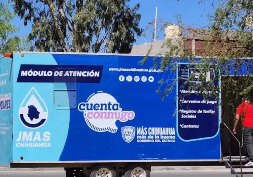 La Junta Municipal de Agua y Saneamiento (JMAS) de Chihuahua llevó su sucursal móvil a las instalaciones del Polideportivo Luis H. Álvarez, ubicado en las Quintas Carolinas, donde se contará con atención a usuarios para pagos, convenios, descuentos y más.
