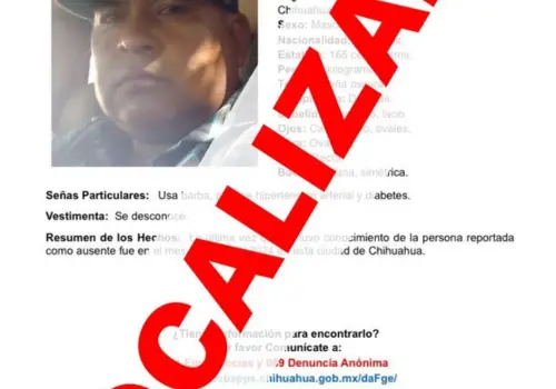 La Fiscalía de Distrito Zona Centro, a través de la Unidad de Investigación de Personas Desaparecidas y/o Ausentes, localizó sano y salvo a Pascual B. P., quien era buscado desde el mes de junio de 2024, en el municipio de Camargo.