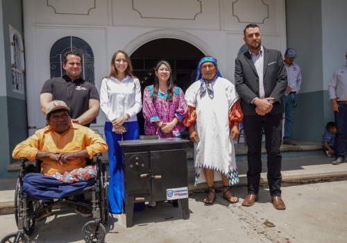 Carla Rivas, secretaria de Desarrollo Humano y Bien Común, le entregó material de construcción para restaurar el inmueble, que consistió en una dotación de láminas, sacos de cemento y una estufa ecológica.