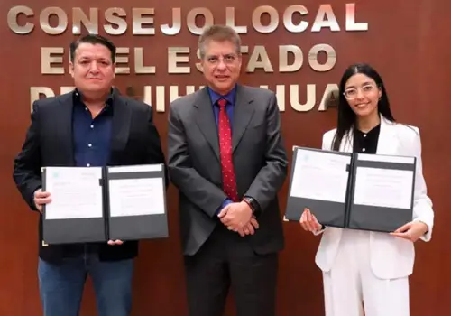 Chihuahua.- El Instituto Nacional Electoral (INE) realizó la entrega de los nombramientos a Diana Patricia Ontiveros Aguirre, Vanesa Adriana Armendáriz Orozco y Jesús Miguel Armendáriz Olivares como consejeras y consejero electoral del Instituto Estatal Electoral de Chihuahua (IEE).
