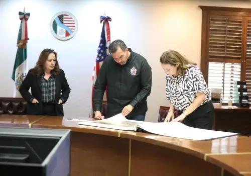 El Presidente Municipal, Cruz Pérez Cuéllar hizo una visita de cortesía a la Comisión Internacional de Límites y Aguas (CILA) para hablar sobre las cuestiones hidrológicas en la región.