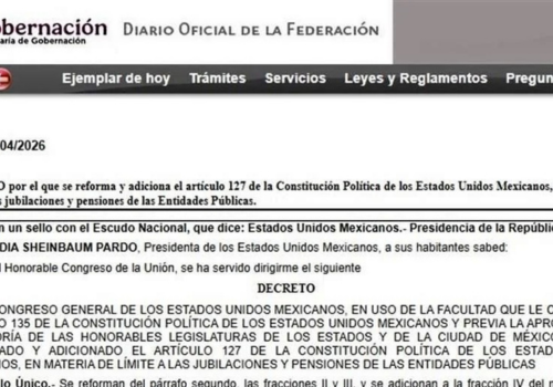 La Presidenta Claudia Sheinbaum promulgó la reforma constitucional que establece un límite a las jubilaciones y pensiones de servidores públicos, con la que se eliminan las llamadas pensiones doradas.
