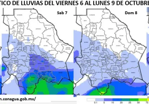 Mientras que en Moris, Uruachi, Chínipas, Guazapares, Urique, Batopilas, Morelos, Guachochi, Nonoava, Carichí, Cusihuiriachi, Belisario Domínguez, Gran Morelos, Santa Isabel, Chihuahua, Rosales, Satevó, Meoqui, Delicias, Saucillo y La Cruz, se pronostican lluvias de aisladas a dispersas (de 2.1 a 5 mm).