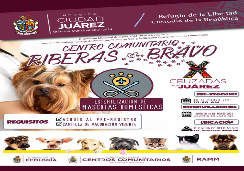 El Gobierno Municipal, a través de la Dirección de Ecología y la Dirección General de Centros Comunitarios, invita a los vecinos de Riberas del Bravo a esterilizar sus mascotas.