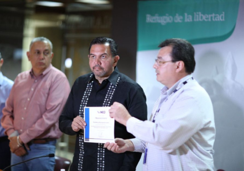 Este día el Presidente Cruz Pérez Cuéllar recibió un reconocimiento por parte del subdirector estatal de Proyectos del Instituto Nacional de Estadística y Geografía (INEGI), Gabriel Franco Cepeda, debido a que el municipio de Juárez fue el primero en entregar en tiempo los datos correspondientes al Censo Nacional de Gobierno Municipales y Demarcaciones Territoriales de México 2023.