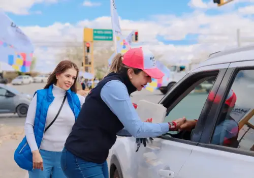 La candidata a diputada federal por la coalición “Fuerza y Corazón por México”, Daniela Álvarez recorrió varias zonas de Ciudad Juárez este lunes, al realizar varios cruceros en la ciudad y recorrer la colonia Satélite.