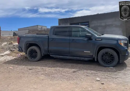 Los agentes ministeriales realizaban un recorrido para detectar unidades con alteraciones en sus números de serie o reporte de robo en la citada población del municipio de Cuauhtémoc, cuando detectaron la unidad de la marca GMC, línea Sierra, modelo 2021, color gris con placas del estado de Utah, EUA.