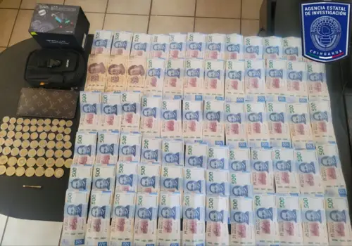 En seguimiento a las indagatorias para esclarecer un robo a casa habitación cometido el 06 de julio del presente año en la ciudad de Parral, elementos de la Agencia Estatal de Investigación recuperaron 34 mil 295 pesos, un monedero, una bolsa táctica y un desarmador para joyería.