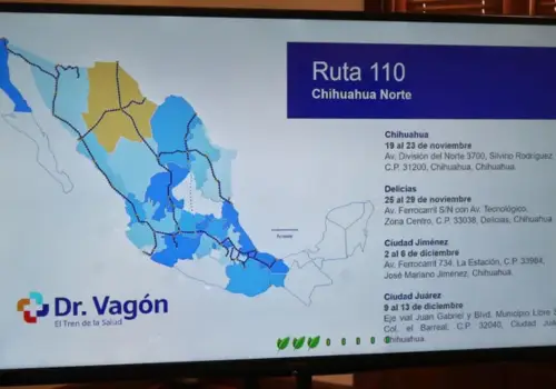 Con una amplia oferta de servicios médicos gratuitos, el Dr. Vagón, El Tren de la Salud, regresa a Chihuahua con su Ruta 110, que se desarrollará del 9 al 13 de diciembre y visitará cuatro municipios.