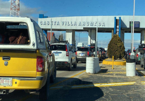Largas filas se registran la tarde de este lunes en la caseta de cobro de Villa Ahumada, provocando en algunos casos la impaciencia de los transeúntes.