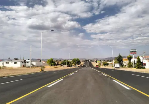 La obra consiste en el mejoramiento de 56.7 kilómetros de la rúa, que tiene un ancho de 7 metros y 21 de corona, lo que mejorará la conectividad y la seguridad residentes de localidades de los municipios de Riva Palacio, Santa Isabel y Cuauhtémoc.