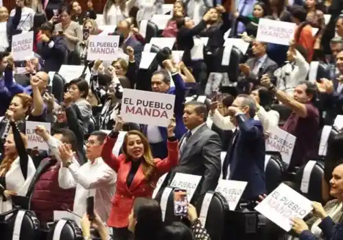 “Esta Secretaría da fe de la recepción de 22 votos aprobatorios al proyecto de decreto por el que se reforman, adicionan y derogan diversas disposiciones de la Constitución Política de los Estados Unidos Mexicanos en materia de reforma del Poder Judicial”, indicó Vázquez mientras morenistas, parados frente a la Mesa Directiva coreaban “reforma judicial, mandato popular”.