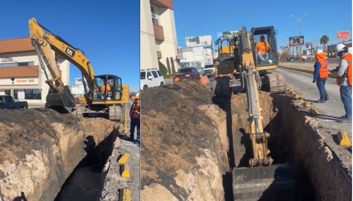 La Junta Municipal de Agua y Saneamiento (JMAS) informó que este domingo se realizan trabajos de reparación en la avenida Tecnológico, a la altura de la calle Aguirre Laredo, luego de que se registrara un hundimiento en la zona.