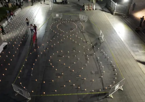 La escena fue conmovedora: las veladoras, cuidadosamente dispuestas alrededor del quiosco y en las áreas verdes de la plaza, iluminaban el ambiente con una luz cálida y simbólica. A medida que caía la noche, el logotipo internacional “Salvemos las dos vidas” brillaba entre las velas, transmitiendo un mensaje de esperanza y unidad.
