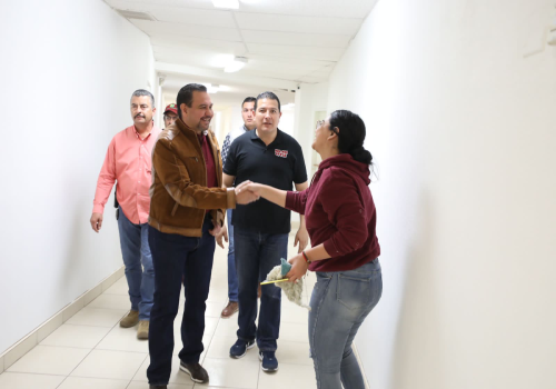 - Este lunes el Presidente Municipal, Cruz Pérez Cuéllar, hizo una visita para supervisar los trabajos de mejoramiento de imagen y espacios públicos en las oficinas de la Dirección General de Desarrollo Social.