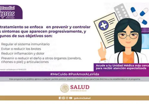 La especialista dio a conocer que el tratamiento del lupus está enfocado en el control de la enfermedad, ya que hasta el momento no existe cura; además, este padecimiento es de difícil diagnostico debido a que los síntomas como dolor de cabeza e inflamación en las articulaciones, ulceras bucales, cansancio y sensibilidad al sol, entre otros, aparecen lentamente.
