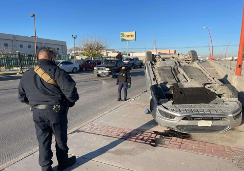 Ciudad Juárez.- Un choque volcadura se registro esta mañana frente a la Central Camionera.